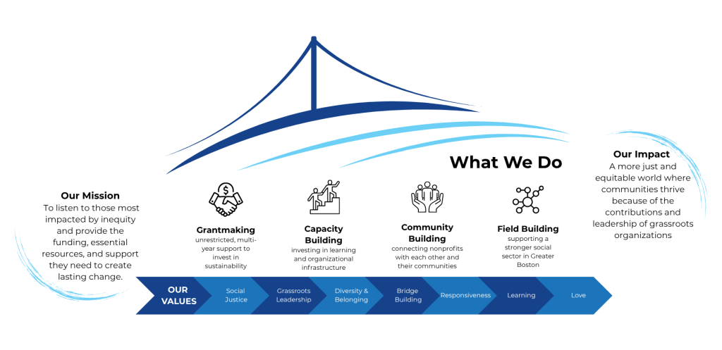 The Lenny Zakim Fund works to develop deep relationships and builds bridges among people and communities to advance social, economic, and racial justice. Our mission is to listen to those most impacted by inequity and provide the funding, essential resources, and support they need to create lasting change. We envision a more just and equitable world where communities thrive because of the contributions and leadership of grassroots organizations.